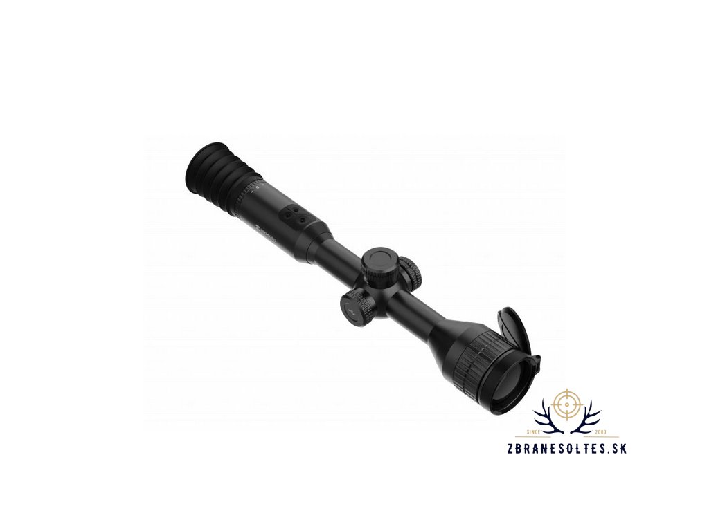 Termovízny puškohľad. Objektív 50 mm. Optické zväčšenie: 3,85x. Digitálne zväčšenie až 8x. Celkové zväčšenie: 30,8x. Detekcia až 2 600 m. Displej OLED 1 024 × 768 px. Jadro Hikmicro 384 × 288 px 12 µm VOx. Citlivosť jadra: < 35 mk. Napájanie na integrovaný akumulátor cez vstup USB-C. Napájací kábel je súčasťou balenia. Prevádzkový čas batérie až 15 hodín. Hmotnosť: pod 970 g. Vodotesnosť: IP67 (ochrana proti ponoreniu do vody. Ponorenie na 30 minút do hĺbky 1 metra). Technológia vylepšenia obrazu: AGC, DDE a 3D DNR.
